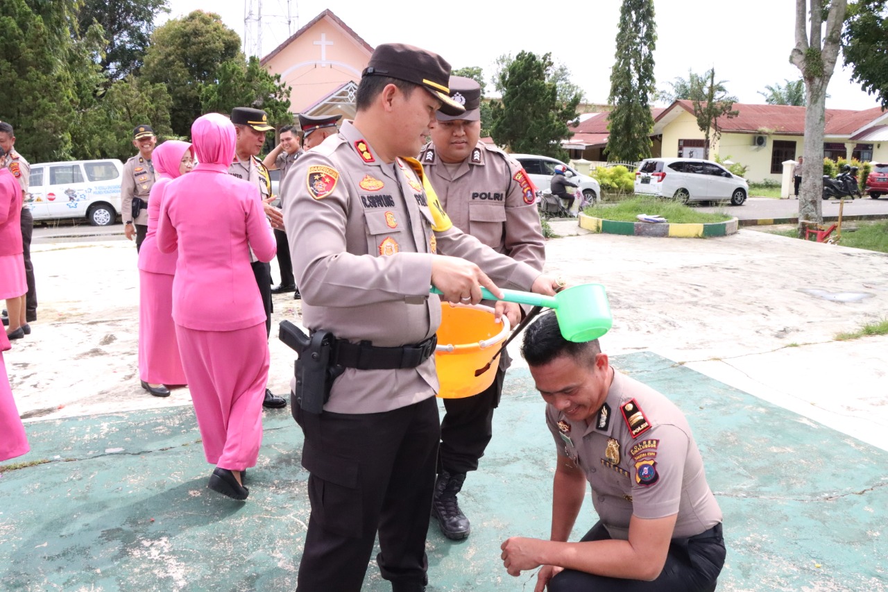 Kegiatan dilanjutkan dengan tradisi memandikan air bunga kepada seluruh personel Polres Simalungun yang naik pangkat, Periode 01 Januari 2023 dan ucapan selamat Kapolres bersama seluruh PJU Polres Simalungun kepada para personel yang naik pangkat.