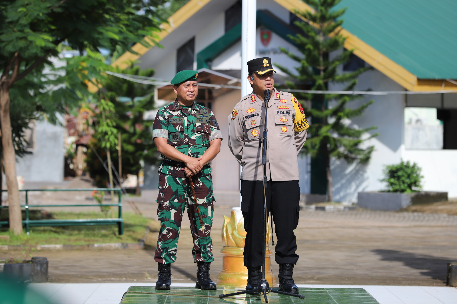 Suasana apel berlangsung khidmat dan penuh keakraban, mencerminkan sinergitas yang telah terjalin erat antara Polres Gowa dan Kodim 1409/Gowa.