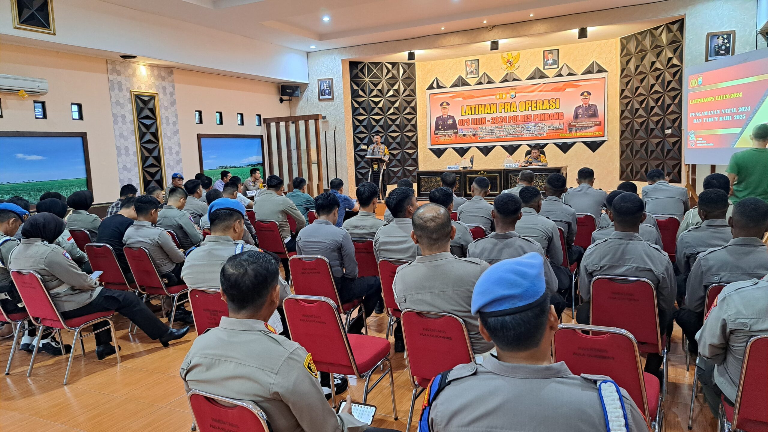 Kegiatan Latpra Ops Lilin 2024 dilaksanakan di Aula Wicaksana Lagawa Polres Pinrang, Jalan Bintang Kecamatan Watang Sawitto Kabupaten Pinrang, Kamis (19/12/2024).