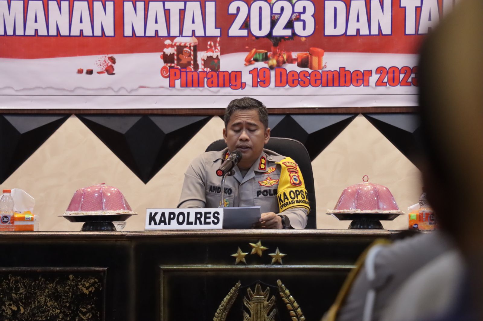“perayaan natal 2023 dan tahun baru 2024 bagi masyarakat mempunyai karakteristik yang khas karena bukan hanya perayaan keagamaan tetapi sudah berkembang sebagai tradisi atau budaya sehingga dalam merayakan natal dan tahun baru selalu disertai dengan peningkatan aktifitas masyarakat” tutur kapolres
