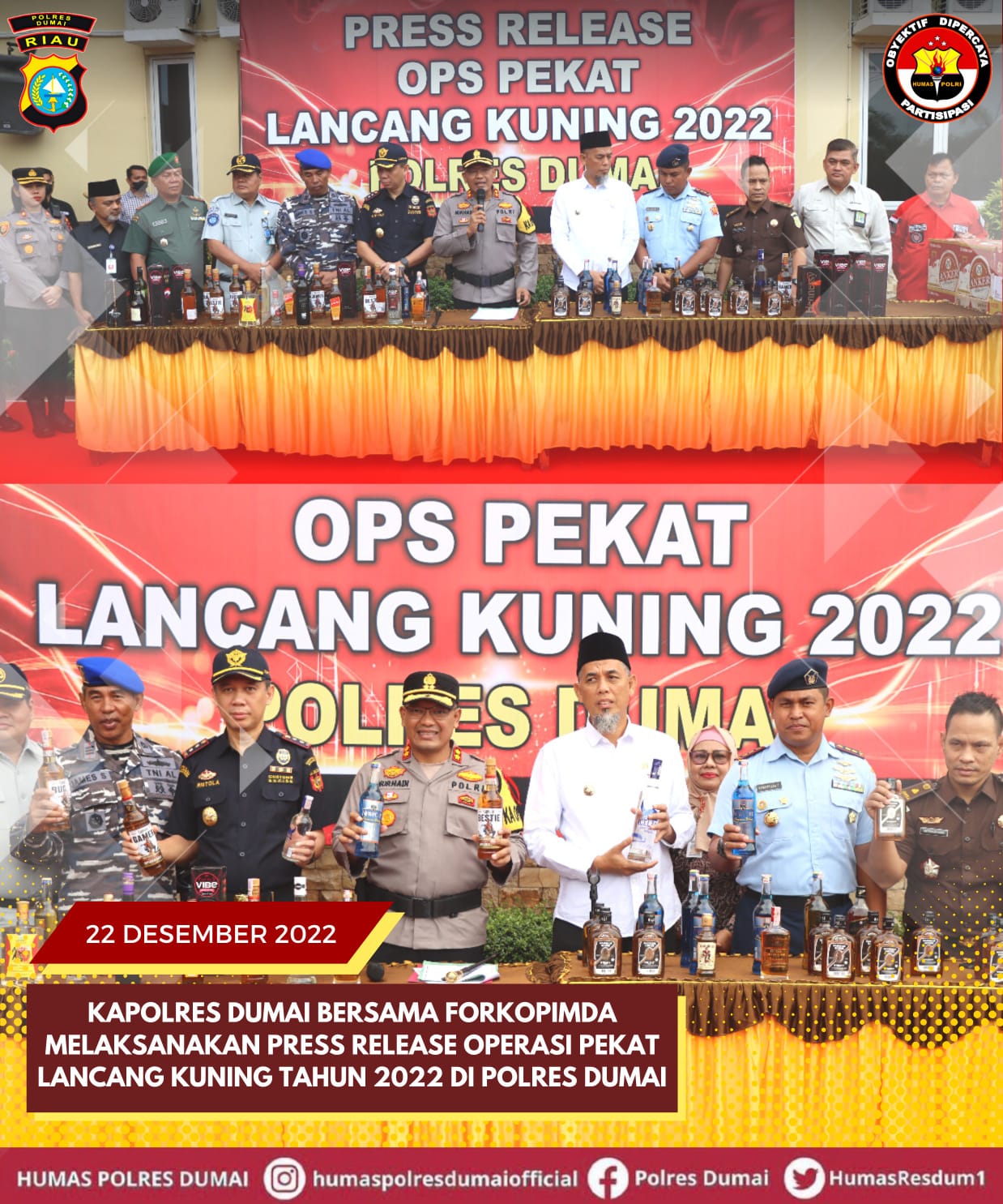Jelang Nataru,Polres Dumai Gelar Operasi Lilin Lancang Kuning Tahun 2022 Dan Press Release Hasil Operasi Pekat Lancang Kuning 2022