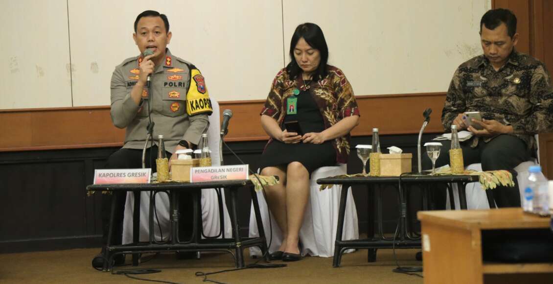 Kapolres Gresik AKBP Adhitya Panji Anom mengungkapkan Indikator keberhasilan Pemilu tahun 2024 antara lain, Pemilu dapat terselenggara dengan aman dan kondusif dan Partisipan Pemilu.