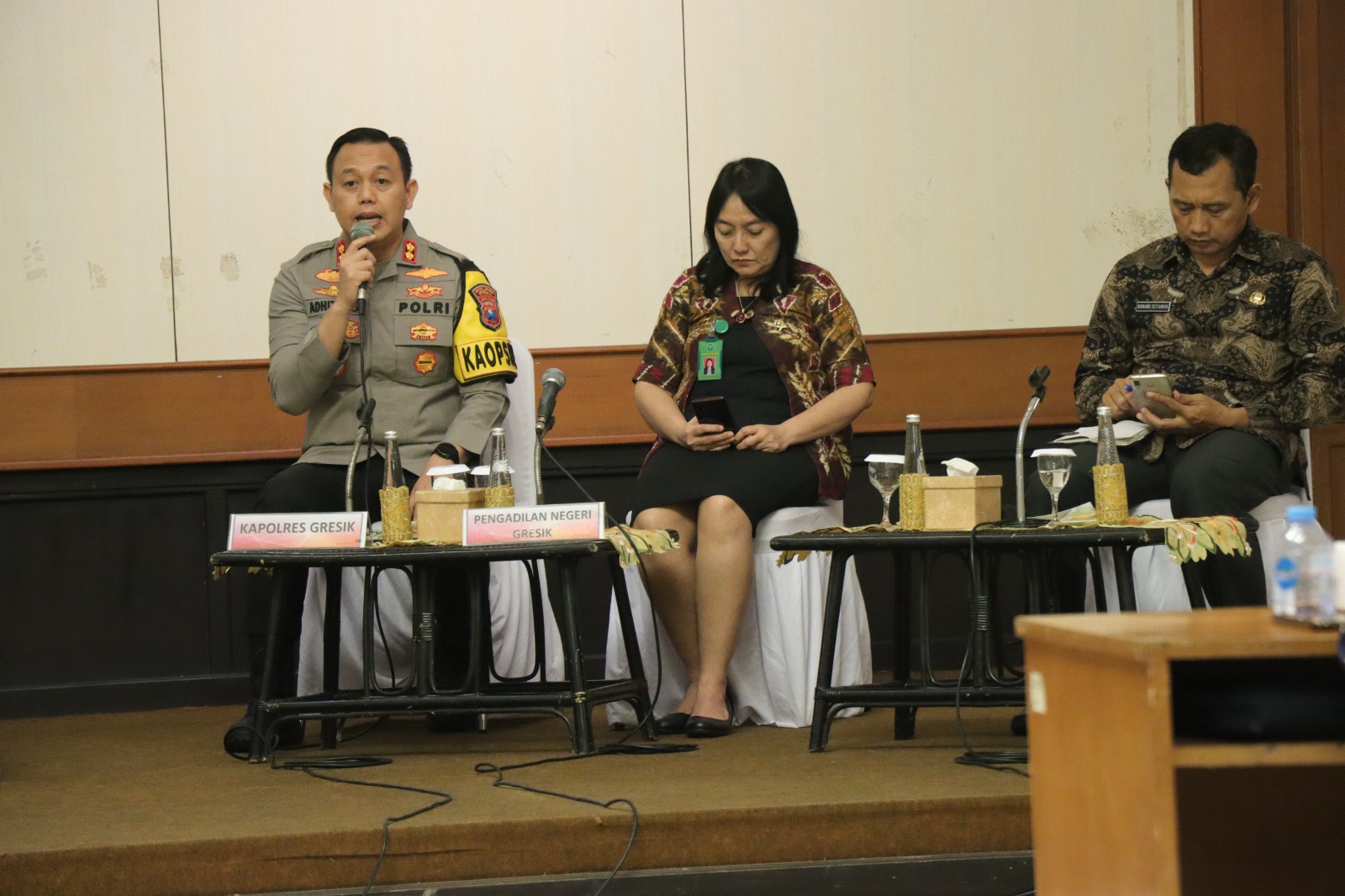 “Memang Kabupaten Gresik secara historis relatif aman dan kondusif, namun kami tetap berharap dalam pelaksanaan tugas kedepan, agar kita semua dapat menempatkan diri sebagaimana mestinya sesuai dengan tupoksi masing-masing.