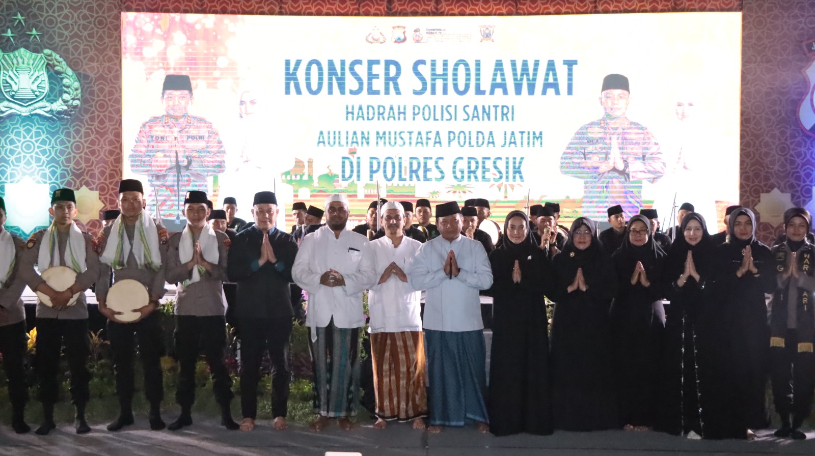 Jelang Pemilu 2024 Polres Gresik Gelar Sholawatan Bersama Tim Hadrah Aulian Musthofa Polda Jatim