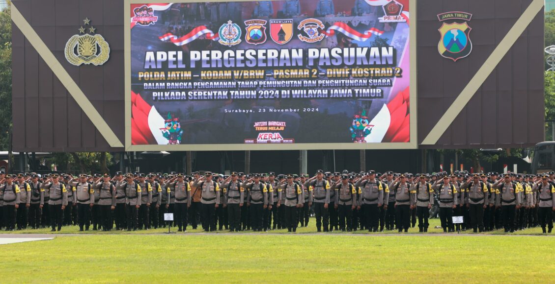 SURABAYA, ikagawanews.id – Untuk pengamanan tahap pemungutan suara Pilkada 2024 serentak, Polda Jawa Timur, Kodam V/Brawijaya, Pasmar 2 dan Divif Kostrad 2, melepas personel pengamanan Pilkada 2024.