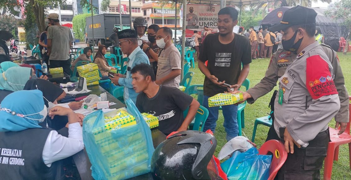 LHOKSEUMAWE,ikagawanews.id – Polres Lhokseumawe membagikan 500 nasi kotak pada kegiatan Jumat Barokah yang berlangsung di Masjid Islamic Center Kota Lhokseumawe, Jumat (22/10/2021).
