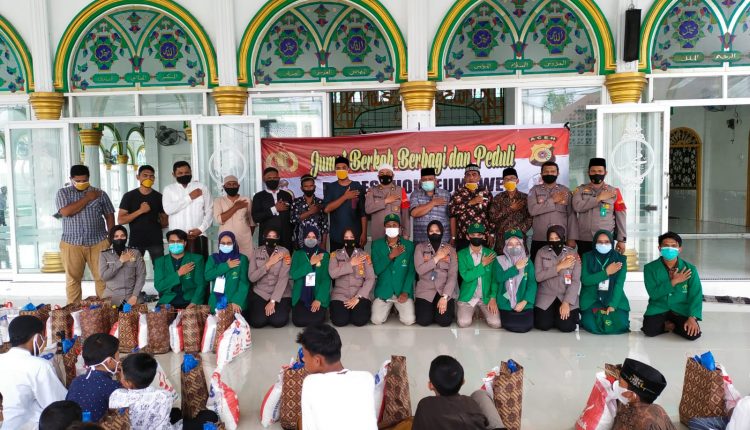 Jumat Berkah Berbagi dan Peduli Polres Lhokseumawe Santuni Puluhan Yatim Piatu di Desa Pusong Lama