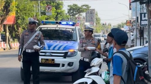 Jum’at Berkah, Sat Lantas Polres Sinjai Berbagi Nasi Kotak Kepada Pengguna Jalan