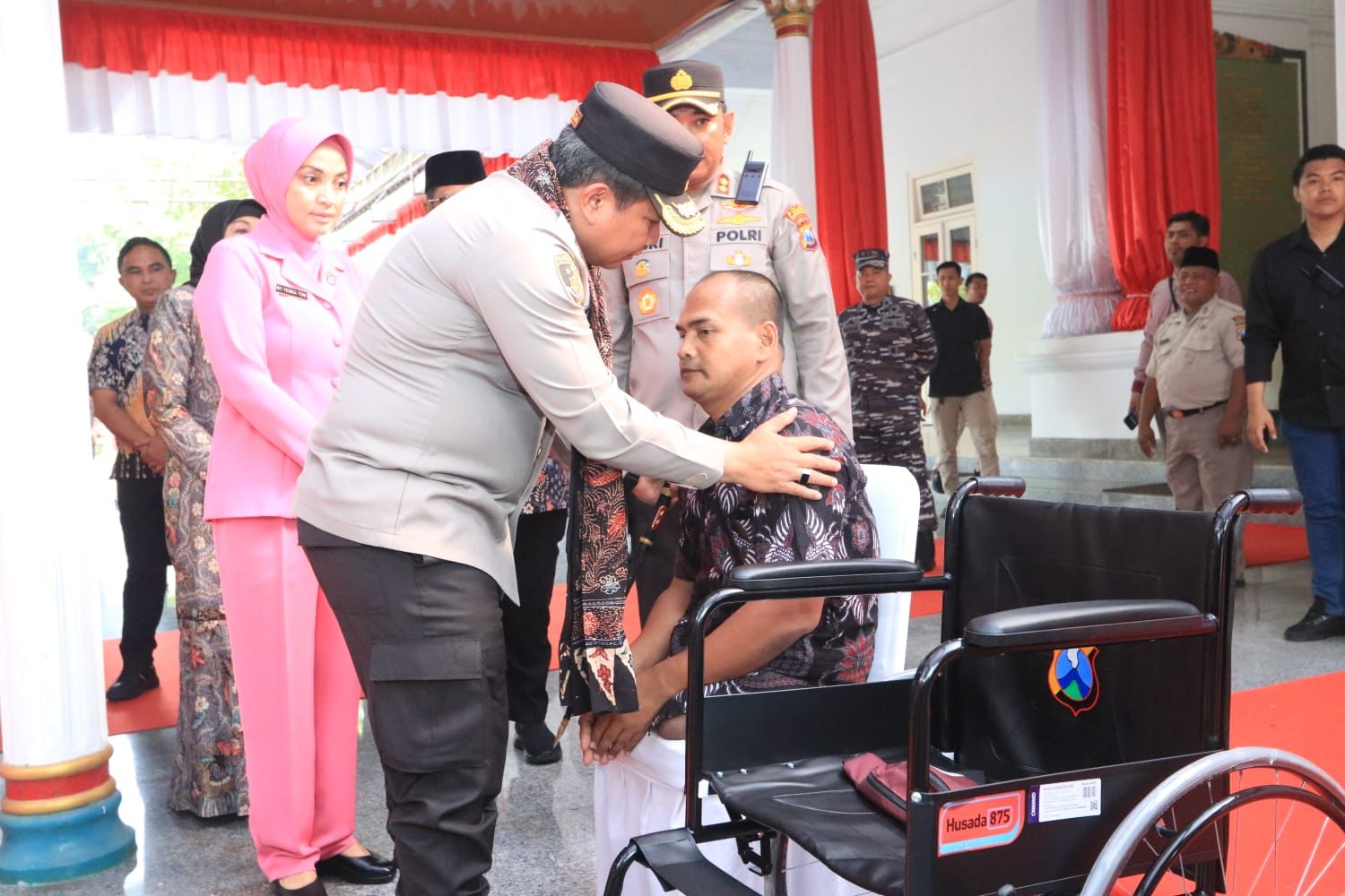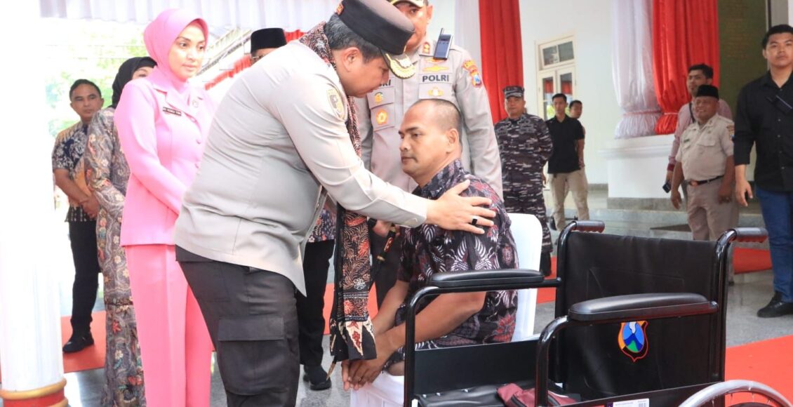 Sebelumnya Kapolda Jatim dan Ketua Bhayangkari Daerah Jawa Timur memberikan santunan kepada anak yatim piatu dan memberikan bantuan kursi roda kepada disabilitas di Bangkalan.