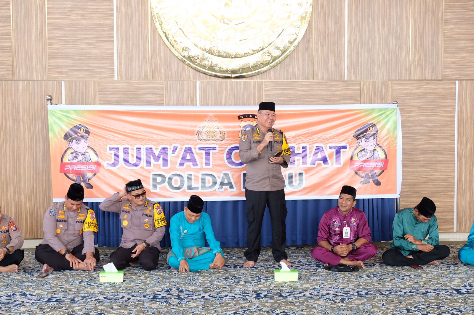 Dalam kesempatan tersebut, Tim Jumat Curhat Polda Riau dipimpin langsung oleh Irwasda Kombes Pol. Hermansyah, didampingi oleh Karolog Kombes Pol. Sambas Kurniawan.,S.I.K., Dirbinmas Kombes Pol. Rudi Abdi Kasenda, Kabid TIK Kombes Pol. M. Hasyim Risahondua, S.I.K., M.Si., serta para Kasubdit Satker Polda Riau.