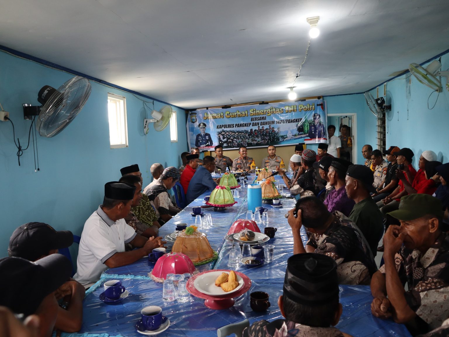 Kegiatan Jum’at Curhat ini dipimpin oleh Kapolres Pangkep AKBP Ari Kartika Bhakti, S.I.K., M.K.P., bersama Dandim 1421 Pangkep Letkol Inf. Fajar yang didampingi oleh Wakapolres Pangkep, Kabag Ren, Kasat Sabhara, Kasat Binmas, Kasat Intelkam, Kapolsek Minasatene, KBO Sat.Lantas Polres Pangkep, Kepala Desa Kabba, Perwakilan Kecamatan Minasatene dan Ketua BPD Desa Kabba.