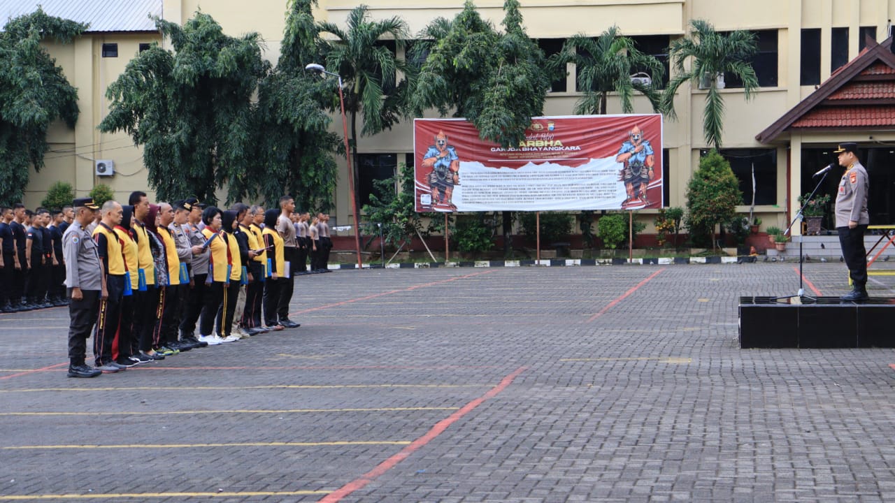 Kegiatan apel pagi diikuti seluruh personel pamen, pama, bintara dan ASN satuan kerja (satker) Polda Sulsel