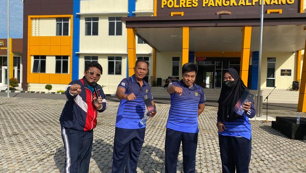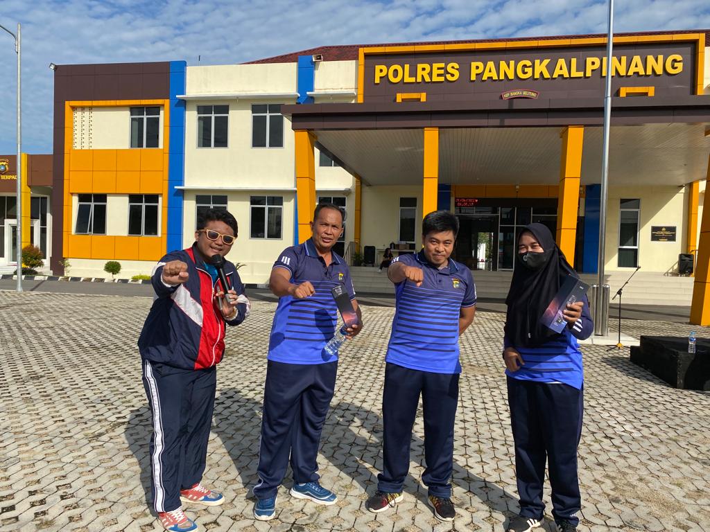 Olahraga bersama kali ini, kita bekerja sama dengan CV. Sumber Jadi Jalan Masjid Jamik Pangkalpinang, untuk menambah semangat personil Polres Pangkalpinang, kita siapkan beberapa door prize untuk personil yang dapat menjawab pertanyaan dari tim Yamaha., terang Kabag SDM Polres Pangkalpinang.