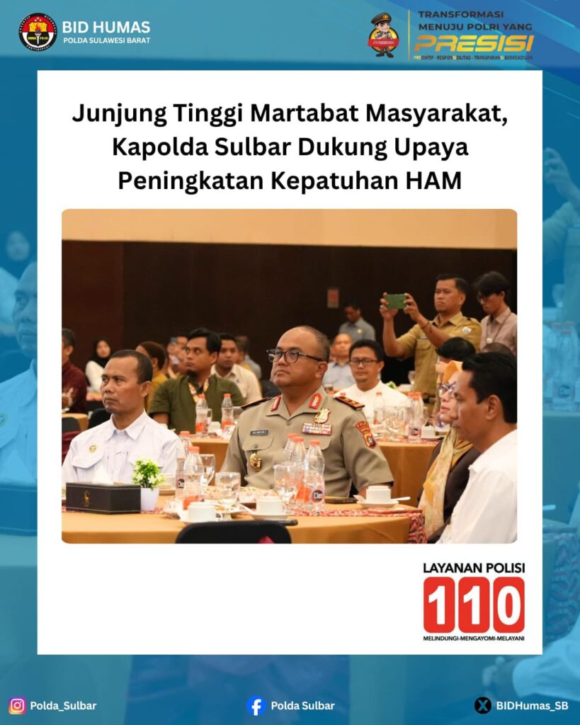 SULBAR,ikagawanews.id – Kepala Kepolisian Daerah Sulawesi Barat, Irjen Pol. Adi Deriyan Jayamarta, S.I.K., M.H. memberikan dukungan penuh terhadap upaya peningkatan kepatuhan Hak Asasi Manusia (HAM) yang komprehensif.