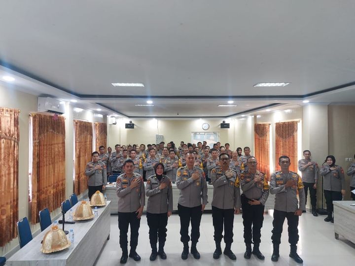 Kabag Binkar Biro SDM Polda Sulsel, AKBP Santiaji Kartasasmita, S.I.K memberikan arahan terkait penggunaan aplikasi PESAT, seperti Sibarani, E-Konseling, dan Pallawa Diapers.