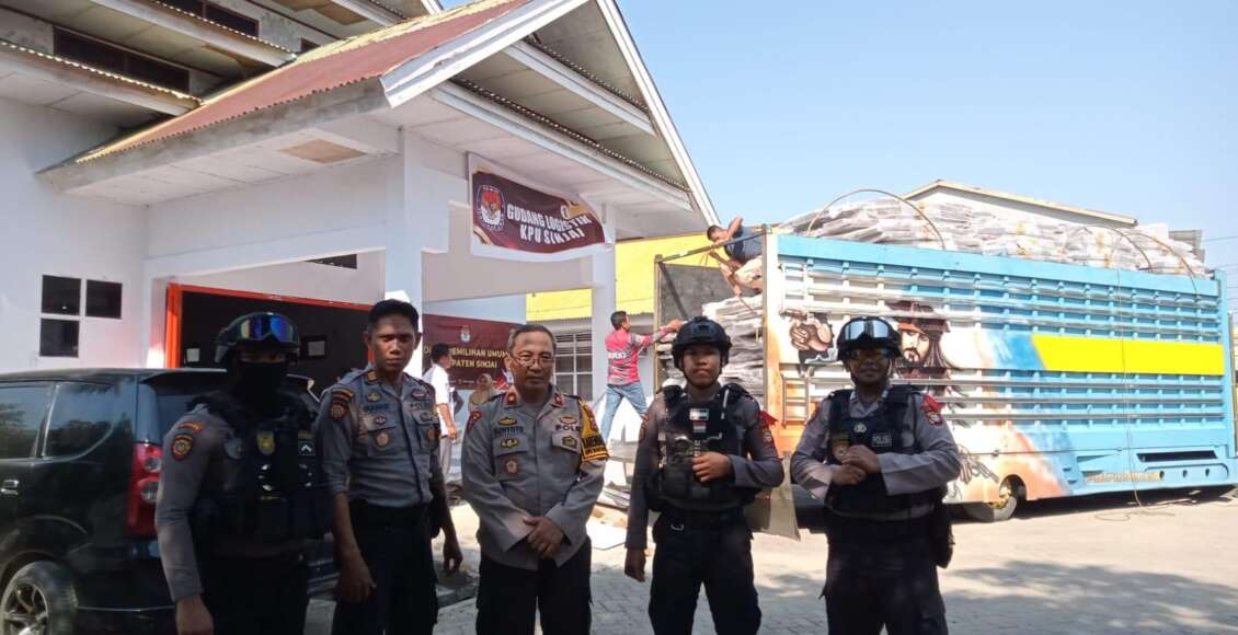 Tim gabungan dari Polres Sinjai berkolaborasi erat dengan petugas keamanan dari KPU untuk memastikan keberlangsungan pengiriman kotak suara ke tempat penyimpanan yang telah ditentukan dalam keadaam aman.