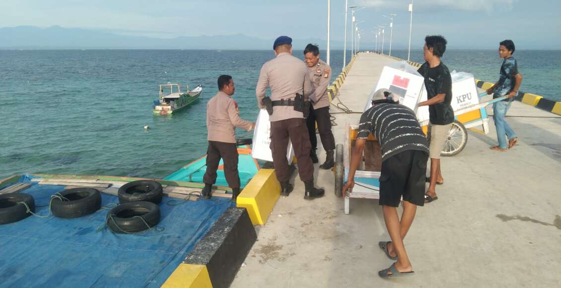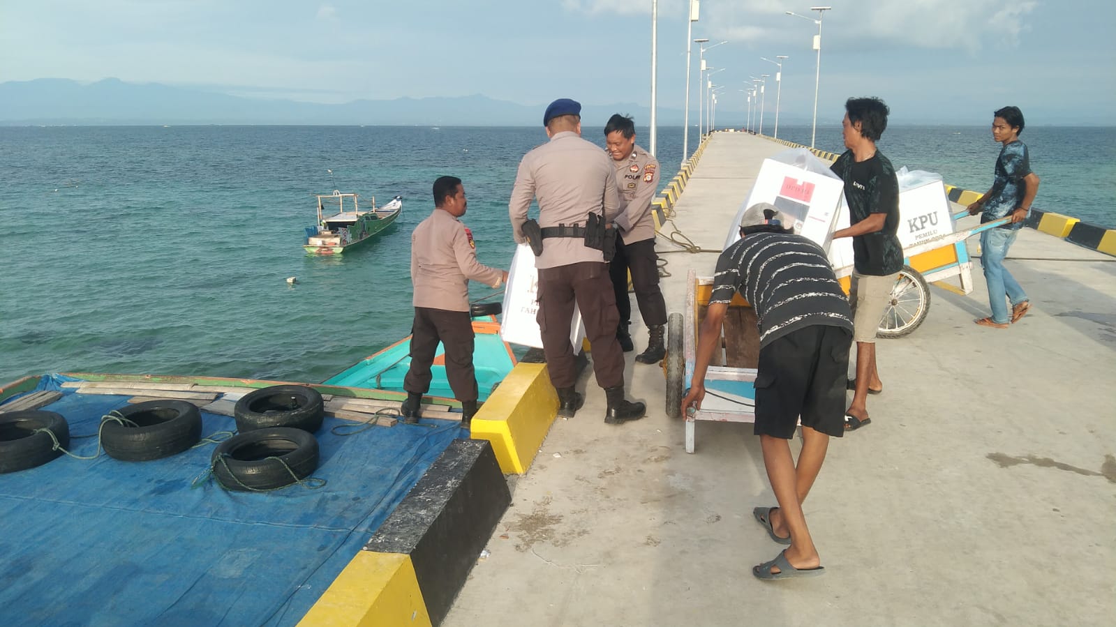 “Kami melakukan pengawalan dan pengamanan logistik pemilu dari PPK Pulau Sembilan menuju KPUD, yang melalui jalur laut dan darat untuk memastikan logistik pemilu sampai di KPU dengan selamat dan tanpa gangguan. ujar Kabag Ops Polres Sinjai Kompol Sunyoto.