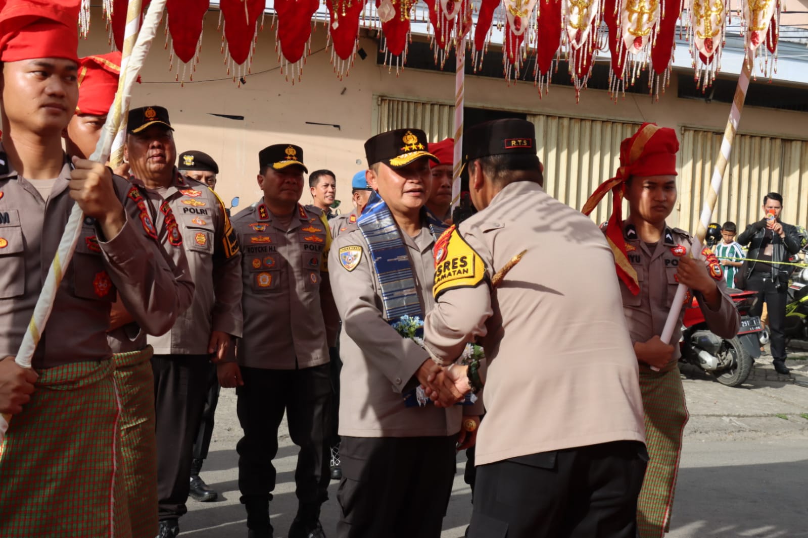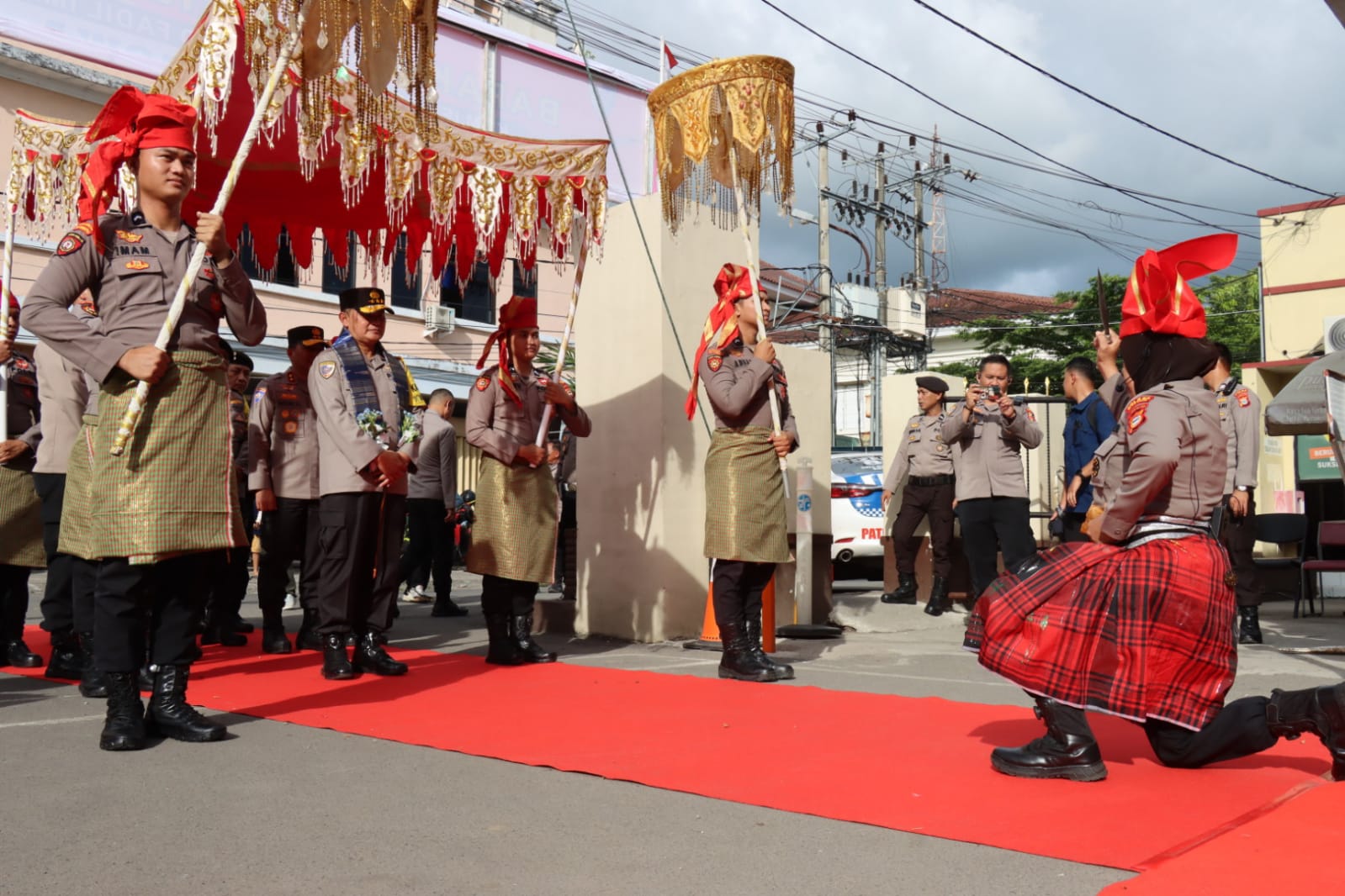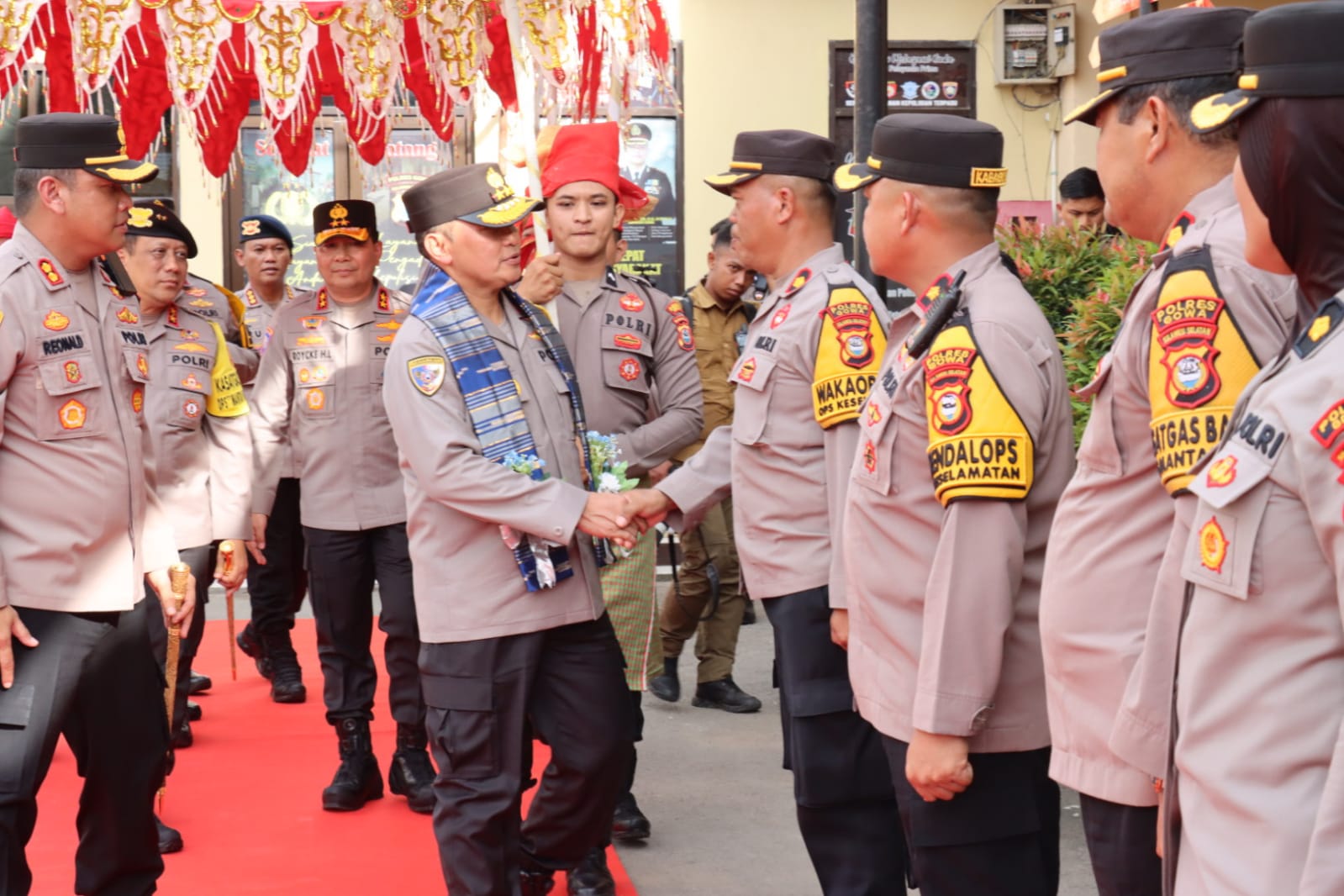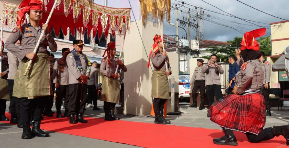 Kedatangan Jenderal Bintang Tiga yang juga salah satu putra asli Kabupaten Gowa itu dimako Polres Gowa disambut dengan prosesi adat Makassar dengan penjemputan Angaru serta tarian, Selasa (5/3) sore.