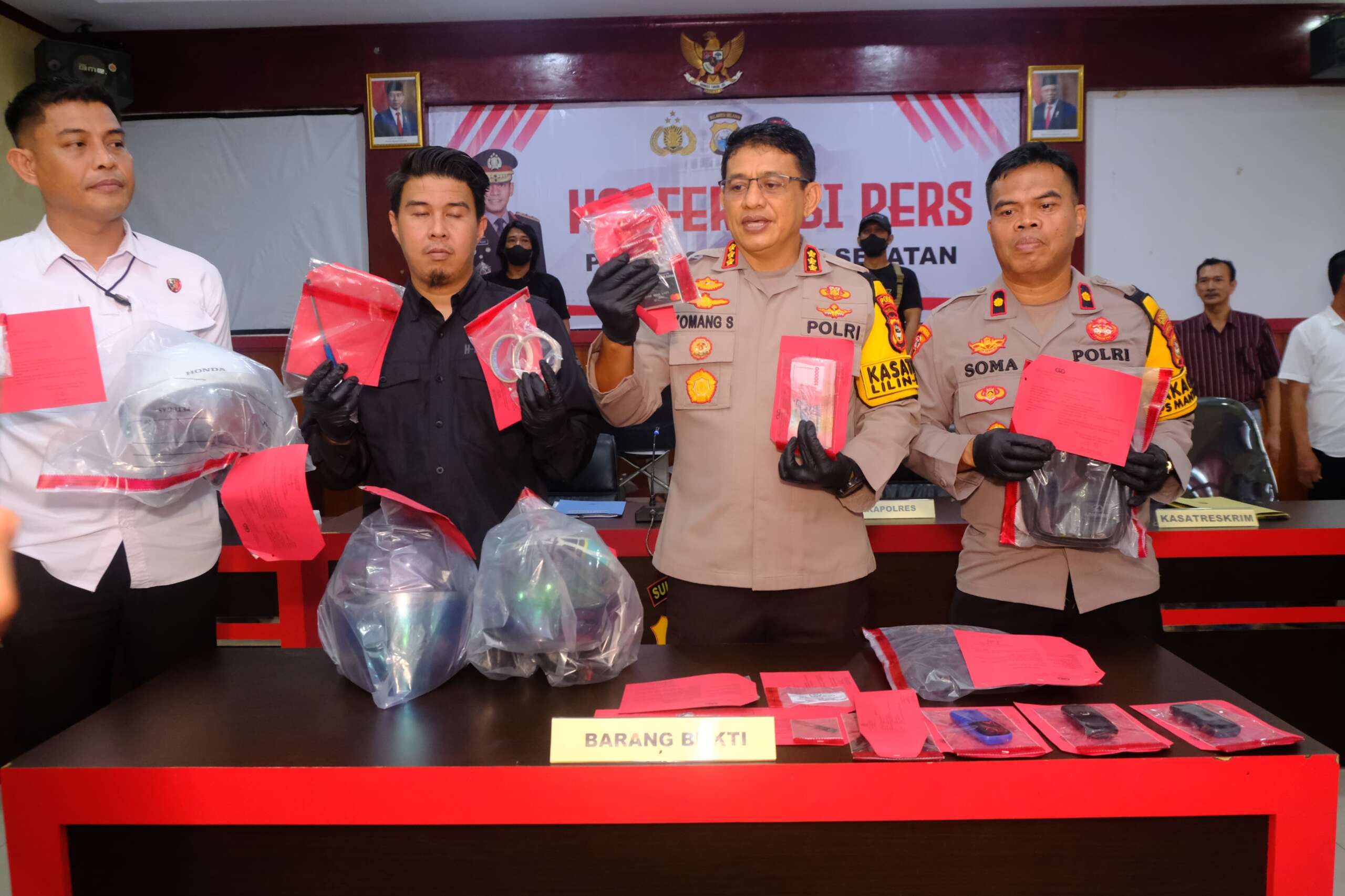 Kabidhumas Polda Sulsel Kombes Pol Komang Suartana didampingi Wakapolres Gowa dan Kasat Reskrim Saat menggelar Press Release di Mapolres Gowa , Rabu, (27/12) mengatakan 2 Pelaku berhasil ditangkap yakni HN (27) warga Klapanunggal Kab.Bogor dan AS (45) warga Cilodong Kota Depok, sementara 2 lainnnya berstatus DPO, yaitu Perempuan PS dan RA.