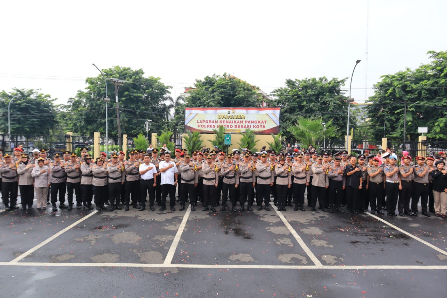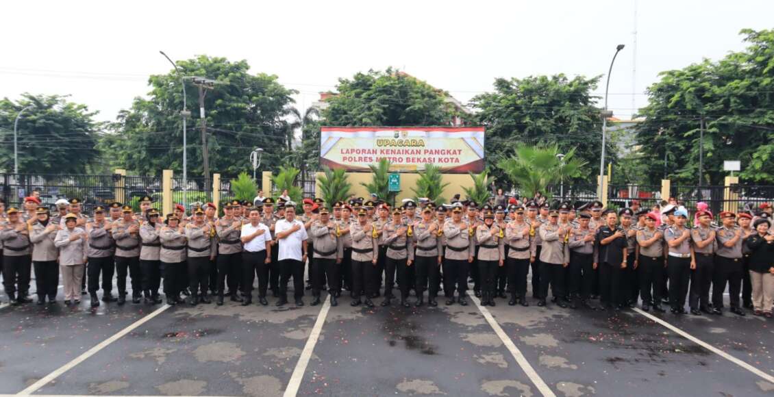 Kado Awal Tahun 2024, Tercatat 137 Personil Polres Metro Bekasi Kota Naik Pangkat dan 3 Personil Naik Pangkat Pengabdian