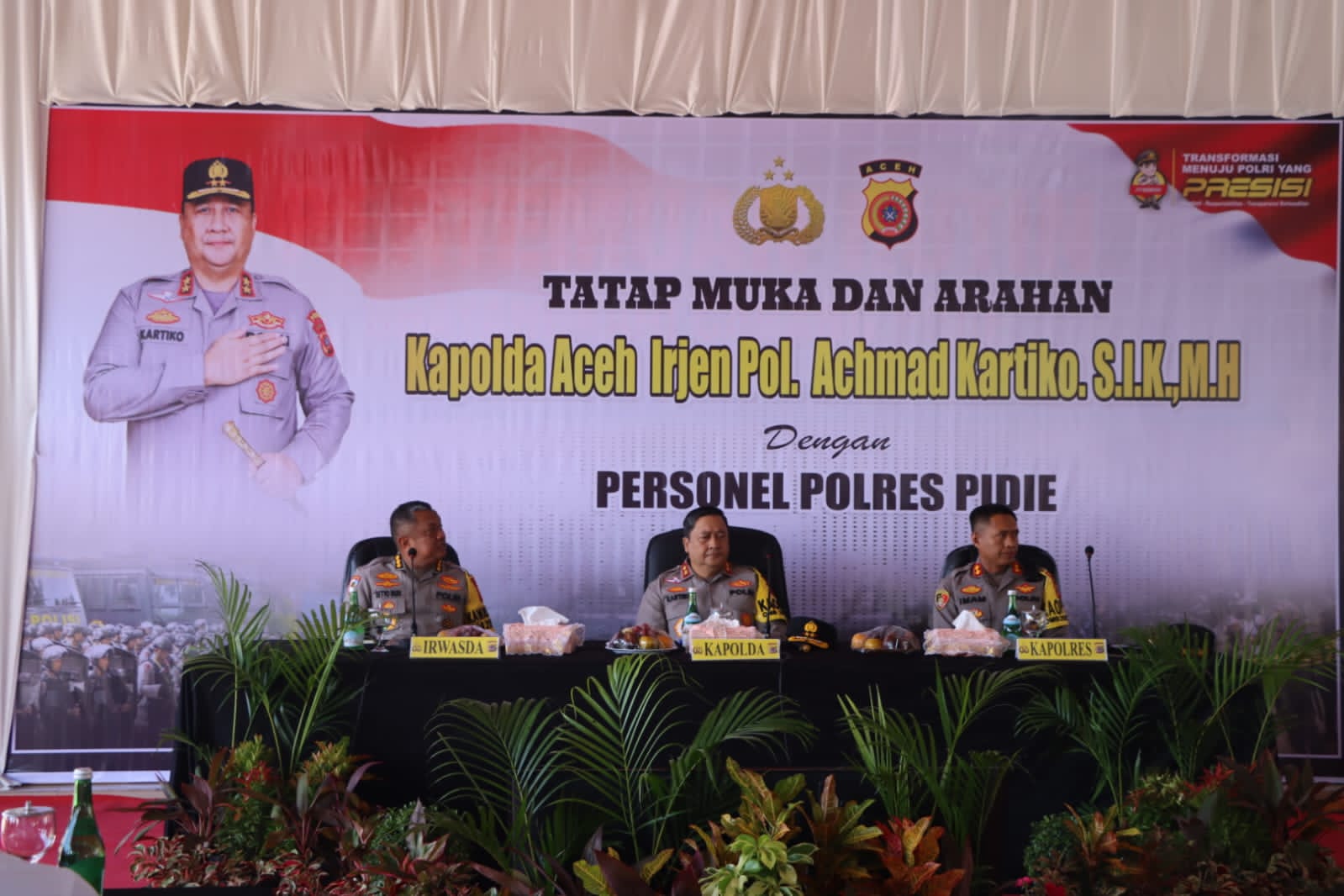 Sementara itu, Kapolres Pidie AKBP Imam Asfali, dalam kesempatannya mengucapkan selamat datang di wilayah Pidie kepada Kapolda Aceh, Irwasda, para pejabat utama, dan seluruh rombongan.