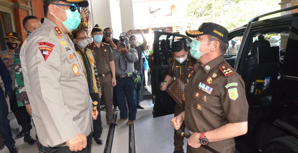 BALI,IKAGAWANEWS.ID – Kapolda Bali Irjen Pol. DR. Petrus Reinhard Golose didampingi Dir Reskrimum Polda Bali Kombes Pol. Dodi Rahmawan S.I.K., M.H., Dir Reskrimsus Polda Bali Kombes Pol. Yuliar Kus Nugroho S.I.K., Dir Resnarkoba Polda Bali Kombes Pol. Mochamad Khozin S.I.K., S.H., M.H., saat menghadiri acara Ramah Tamah dari Jaksa Agung Republik Indonesia bersama Forkopinda (Forum Komunikasi Pimpinan Daerah) Bali, yang bertempat di Kantor Kejaksaan Tinggi Bali, Renon, Jumat (10/7/2020).