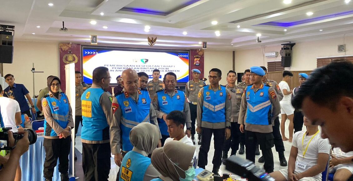 SERANG,ikagawanews.id  – Kapolda Banten bersama Pejabat Utama (PJU) Polda Banten meninjau langsung pelaksanaan pemeriksaan kesehatan (Rikkes) Tahap I dalam rangka penerimaan Bintara Polri Tahun Anggaran 2026 yang dilaksanakan pada Senin, 13 April 2026 di Aula Serbaguna Polda Banten.