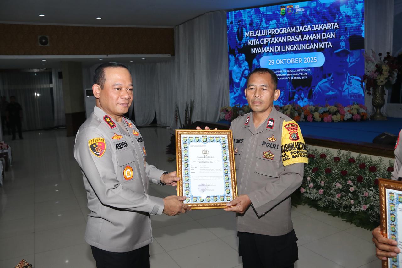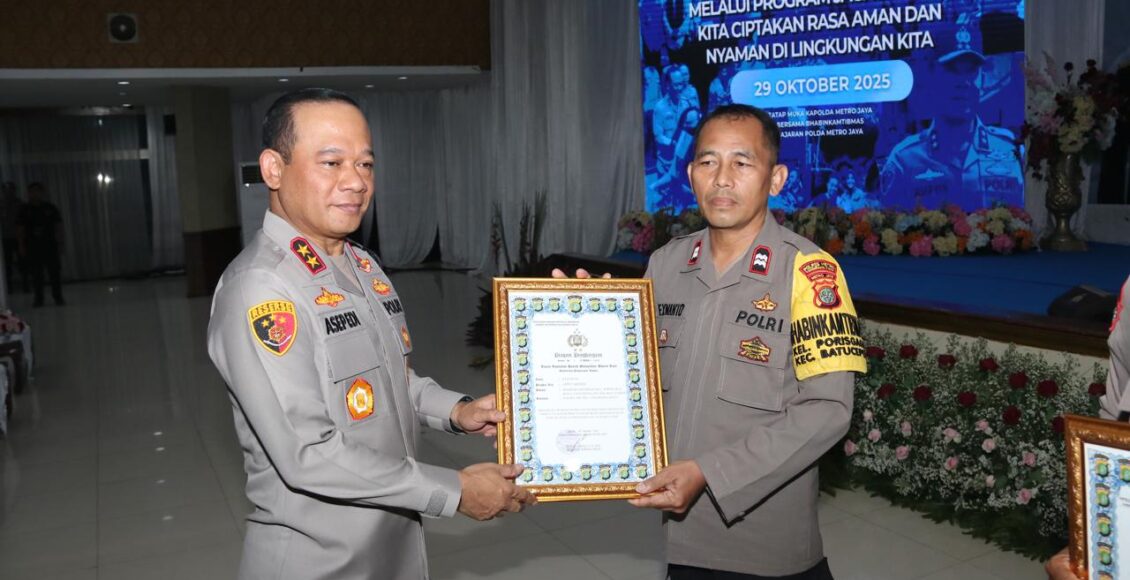 JAKARTA,ikagawanews.id – Dalam kegiatan Arahan Kapolda Metro Jaya kepada Bhabinkamtibmas Jajaran Polda Metro Jaya yang digelar di Balai Pertemuan Polda Metro Jaya pada Rabu (29/10/2025), Aiptu Erwanto, Bhabinkamtibmas Kelurahan Poris Gaga, Polsek Batuceper, Polres Metro Tangerang Kota, menerima penghargaan sebagai Bhabinkamtibmas Teladan dari Kapolda Metro Jaya Irjen Pol Asep Edi Suheri, S.I.K., M.Si.