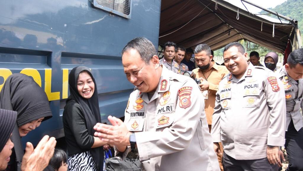 Dalam kesempatan tersebut Kapolda Jabar Irjen Pol Suntana dan Kapolres Bogor AKBP Iman Imanuddin pun berkesempatan menyapa dan menghibur warga di posko pengungsian Polres Bogor.