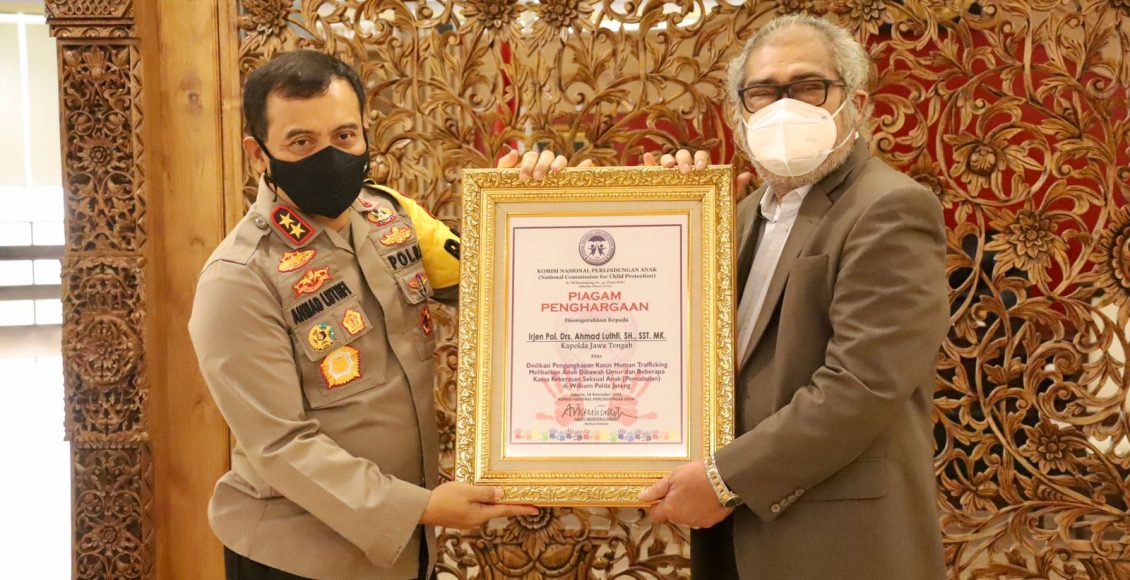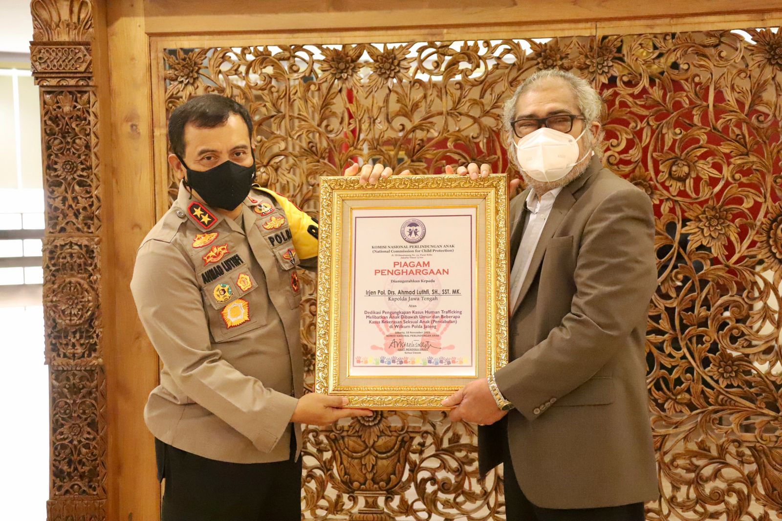Selain mengapresiasi penanganan human trafficking, Komnas Perlindungan Anak juga memberikan penghargaan kepada Kapolda atas perhatian yang diberikan pada anak-anak yatim piatu akibat covid19 yang diwujudkan lewat program Aku Sedulurmu.