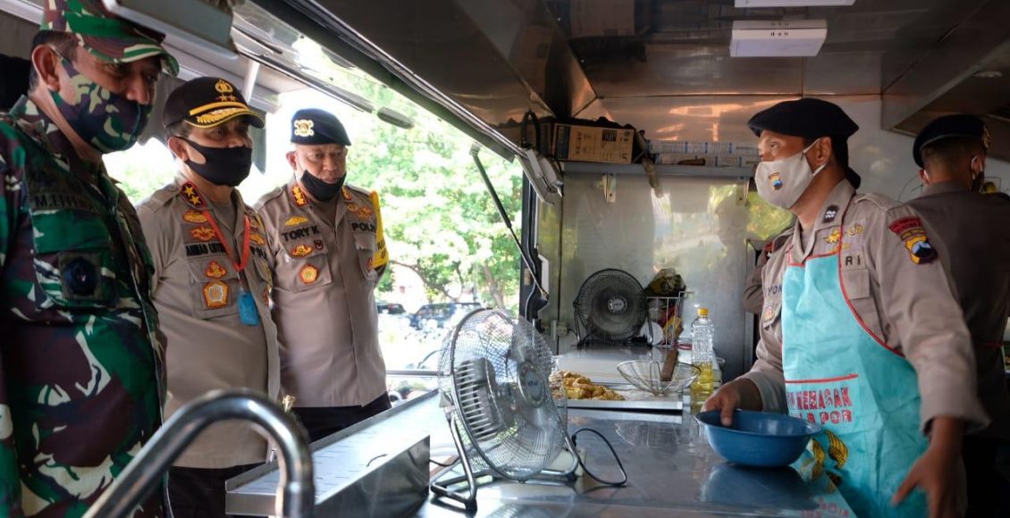 Usai meninjau pengungsian, Kapolda bersama rombongan menuju ke dapur umum Brimobda jateng guna mengecek persiapan penjaminan logistik pengungsi.(Hum/Red)
