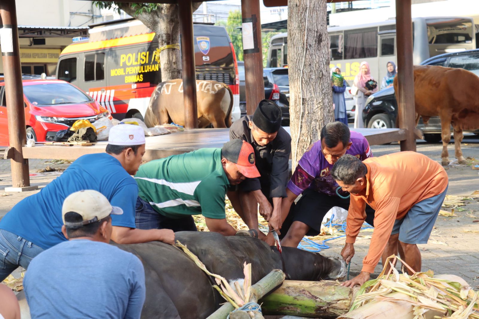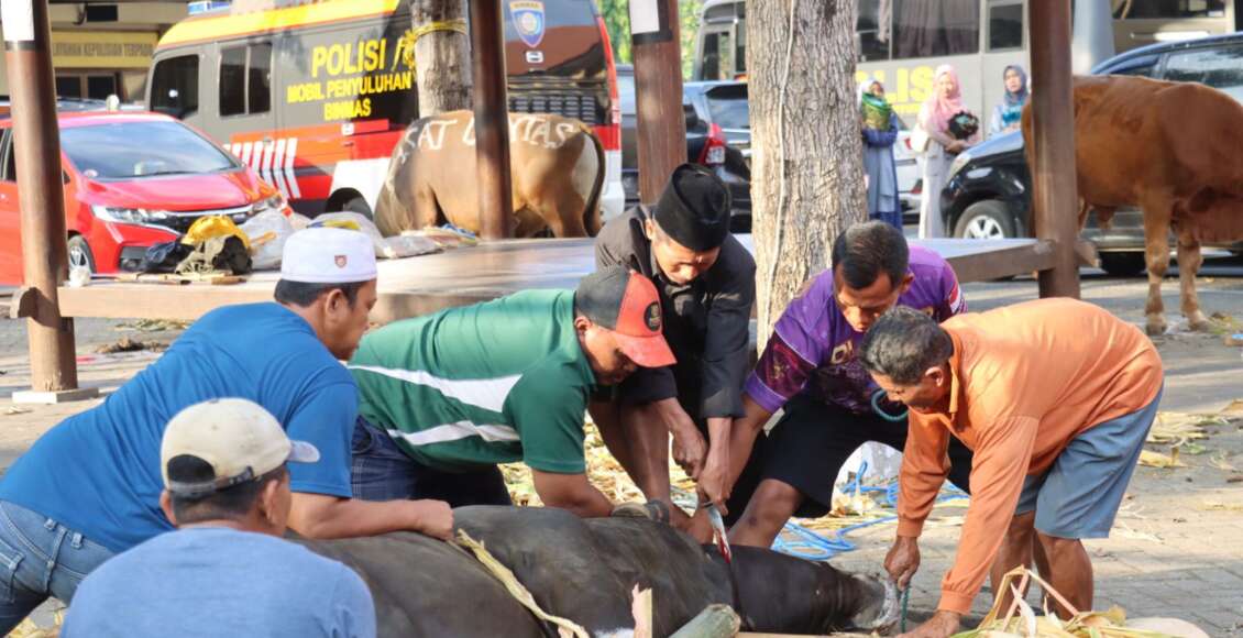 Kapolresta Banyuwangi meminta kepada seluruh panitia kurban untuk membagikan daging kurban kepada Masyarakat yang berhak menerima.