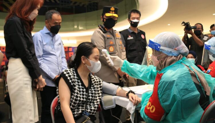 Kapolda Jatim, bersama Pejabat Utama melakukan pengecekan vaksinasi, dalam rangka mendukung program pemerintah, membentuk herd immunity dan memastikan penerapan protokol kesehatan di sektor pusat perbelanjaan.