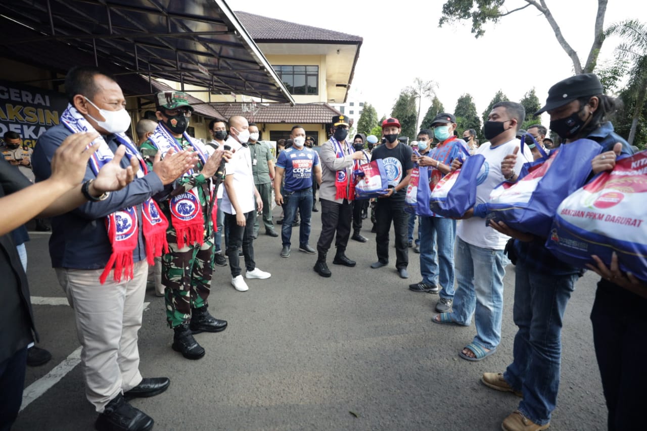 Usai melaksanakan pengecekan vaksinasi, Forkopimda jatim menyerahkan bansos kepada masyarakat Malang dan sekitarnya yang membutuhkan. (Hum/Red)