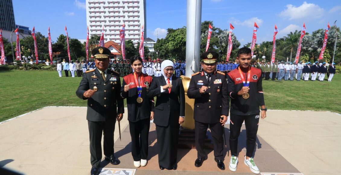 Gubernur Jawa Timur Khofifah Indar Parawansa sebagai Inspektur upacara dalam peringatan Harkitnas mengajak seluruh elemen bangsa untuk terus mengemban semangat juang yang tegak berdiri diatas cita-cita Proklamasi Kemerdekaan Republik Indonesia 1945.