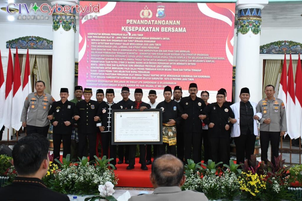 Kapolda Jatim menyampaikan apresiasinya atas kehadiran lengkap peserta baik dari jajaran Forkopimda maupun para tokoh masyarakat dan perwakilan perguruan pencak silat.