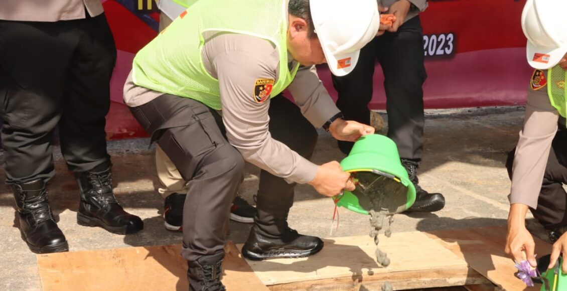 Kapolda Jawa Timur Irjen Pol Dr.Toni Harmanto,M.H meletakan batu pertama sebagai tanda pembangunan Mako dan Gedung SPKT Polres Sumenep dimulai pada Rabu (21/6/2023).