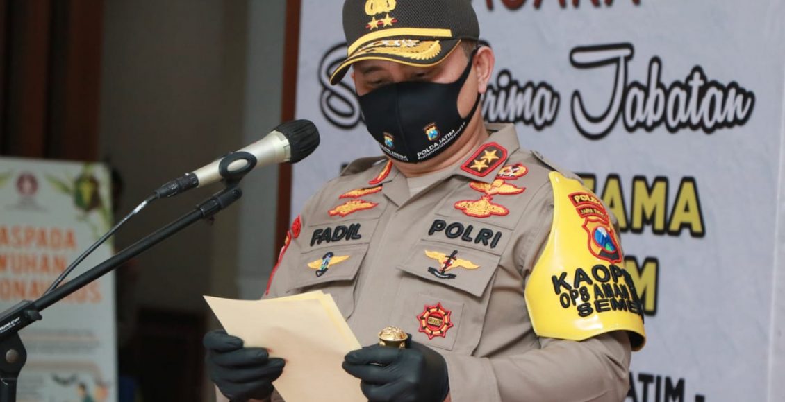 Kapolda Jawa timur berharap kepada pejabat yang baru agar sesegera mungkin beradaptasi dengan lingkungan kerja yang baru dan tentu saja di tengah Pandemi Covid 19 kali ini di harapkan kepada pejabat yang baru agar segera menyesuaikan dan turut memberi kontribusi serta inovasi dalam penanganan Pandemi Virus Covid 19,tegas Kapolda Jatim M.Fadil.