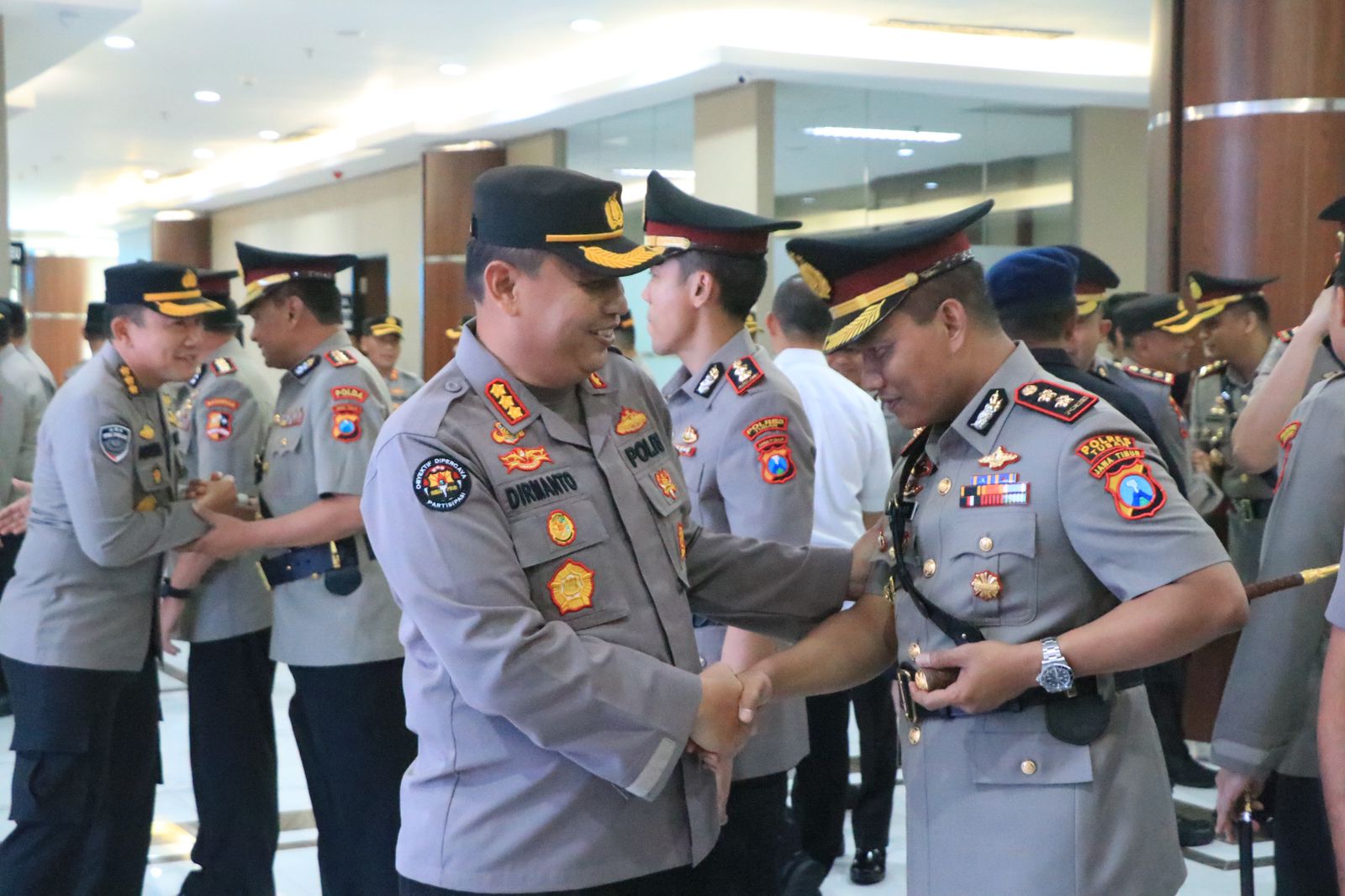 Kapolda Jawa Timur Irjen Dr Pol Toni Harmanto, didampingi Pejabat Utama (PJU) Polda Jatim memimpin langsung upacara serah terima jabatan (sertijab) para Perwira Polri tersebut di Gedung Patuh Mapolda Jatim, Kamis (4/5/2023).