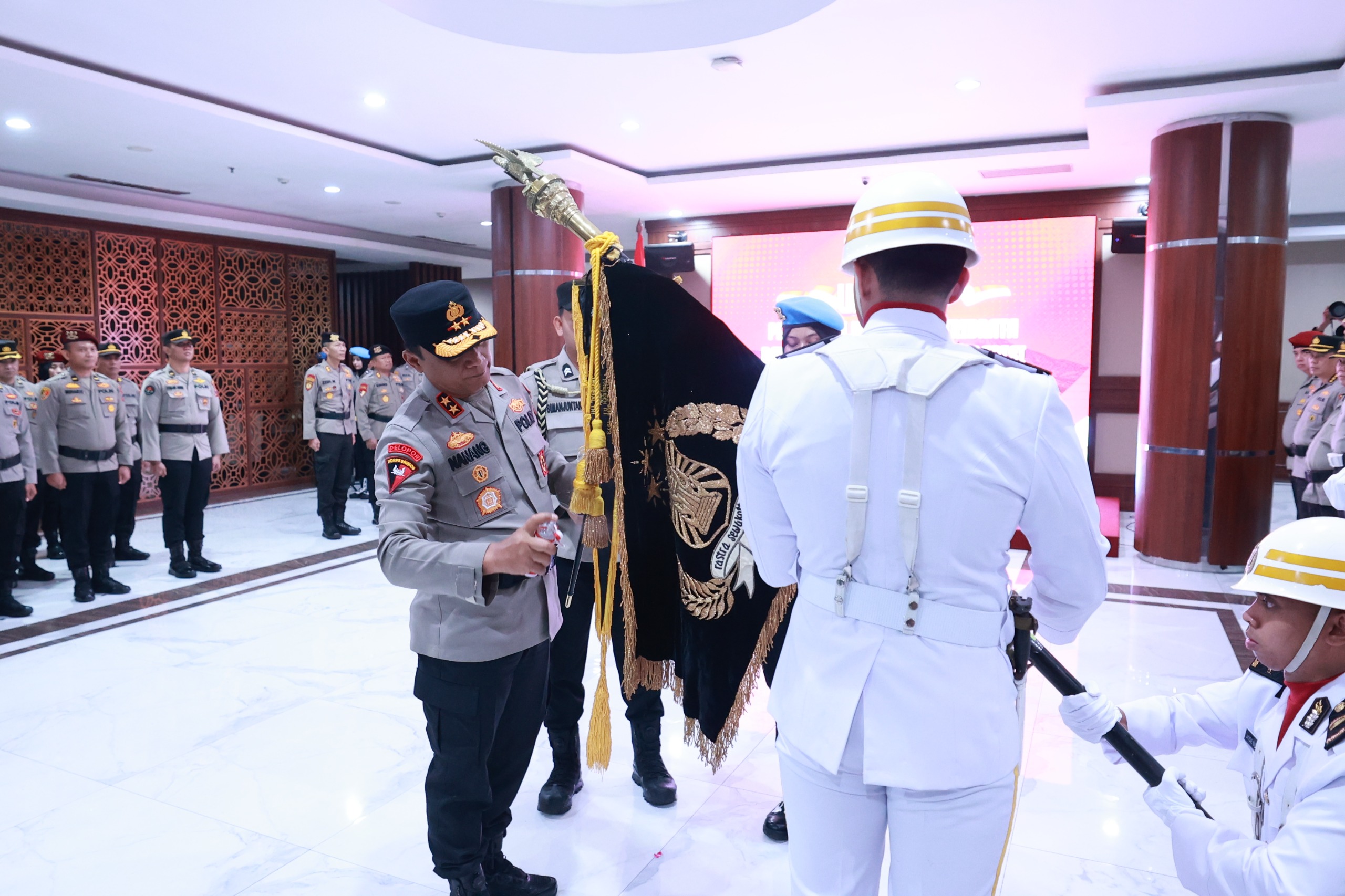 Kapolda Jatim Pimpin Upacara Pemuliaan Nilai Luhur Tribrata Pataka Polda Jatim ‘Tan Hana Dharma Mangrwa’