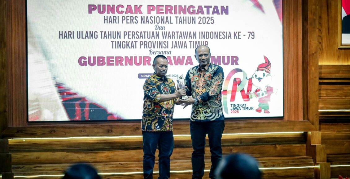 Penghargaan tersebut diserahkan langsung oleh Ketua PWI Jatim Lutfil Hakim kepada Kapolda Jatim,Irjen Pol Nanang Avianto.