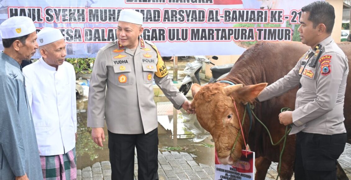 KALSEL,ikagawanews.id – Kapolda Kalimantan Selatan, Irjen Pol Rosyanto Yudha Hermawan, S.I.K., S.H., M.H., menyerahkan 5 ekor sapi dalam rangka peringatan Haul Syekh Muhammad Arsyad Al Banjari ke-219.