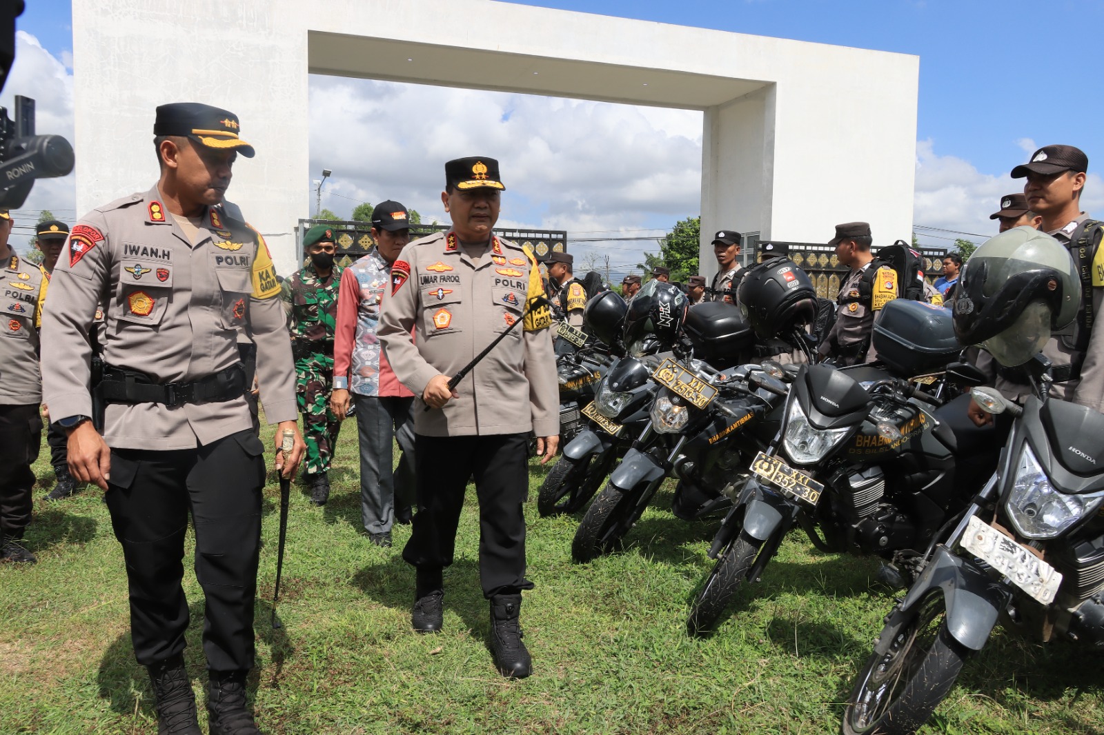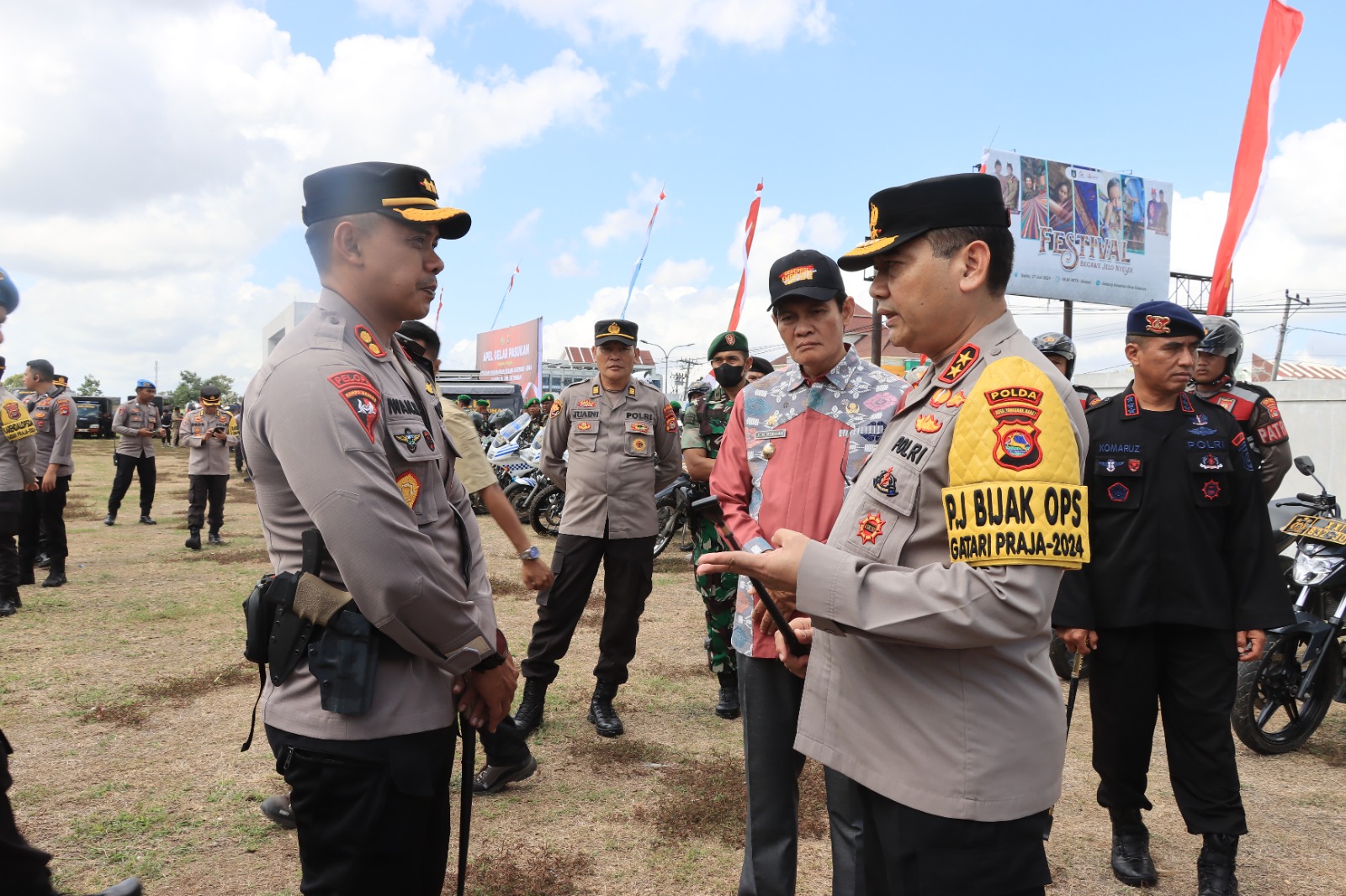 Pada apel tersebut berbagai kendaraan taktis digelar dilapangan kantor bupati berikut dengan sarana dan prasarana pendukung serta kelengkapan perorangan personel guna mengetahui sejauh mana kesiapan pengamanan Pilkada 2024.
