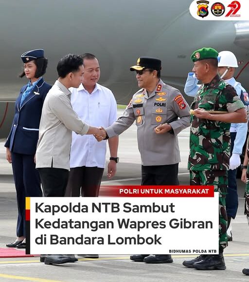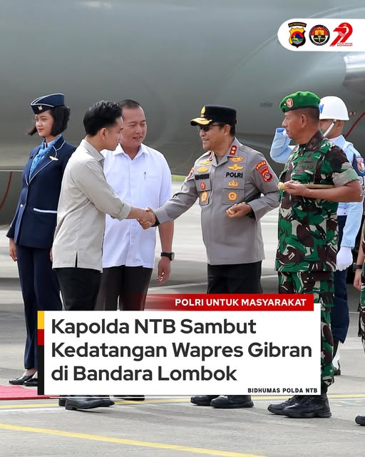 NTB,ikagawanews.id – Kepala Kepolisian Daerah NTB, Irjen Pol Hadi Gunawan, bersama Gubernur NTB Lalu Iqal dan Danrem 162/Wira Bhakti, menyambut langsung kedatangan Wakil Presiden RI Gibran Rakabuming Raka di Bandara Internasional Lombok (Bizam), Jumat pagi (01/08/2025).