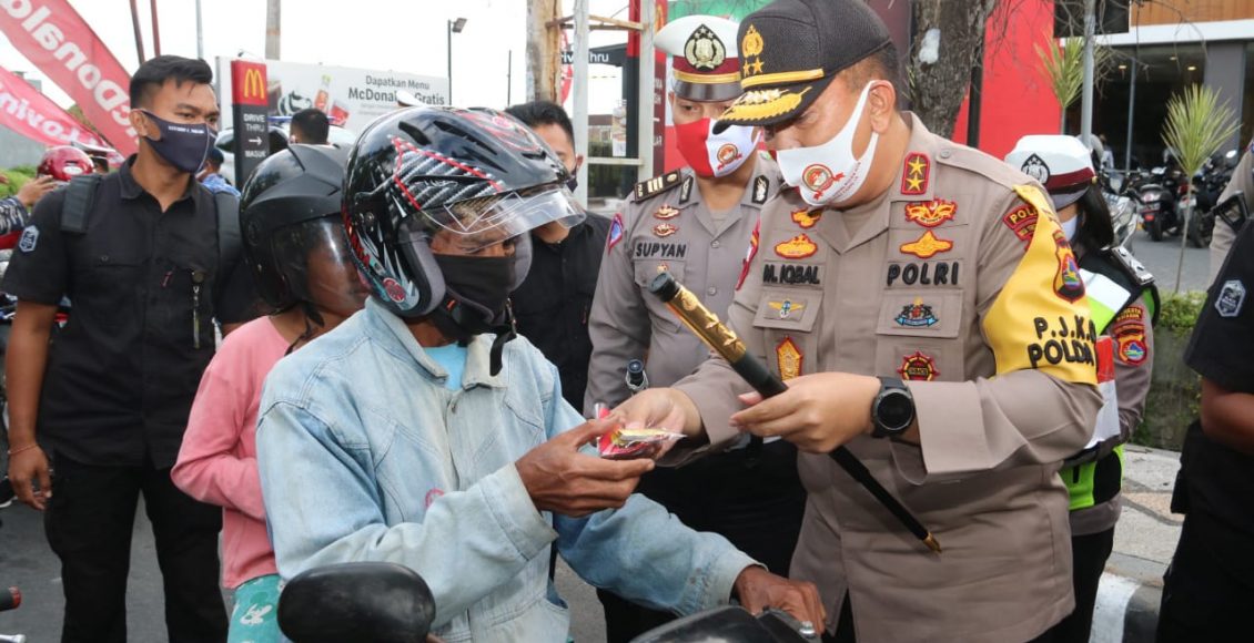 MATARAM,IKAGAWANEWS.ID – Setelah sehari sebelumnya menyerahkan bantuan sebagai wujud nyata Polri ada di tengah masyarakat, sekaligus melakukan sosialisasi new normal life atau tatanan hidup baru pada masyarakat pesisir di Lombok Timur, Selasa (30/6), Polda NTB kembali menggelar sosialisasi dengan menyasar beberapa titik ruas jalan utama di Kota Mataram, Nusa Tenggara Barat (NTB).