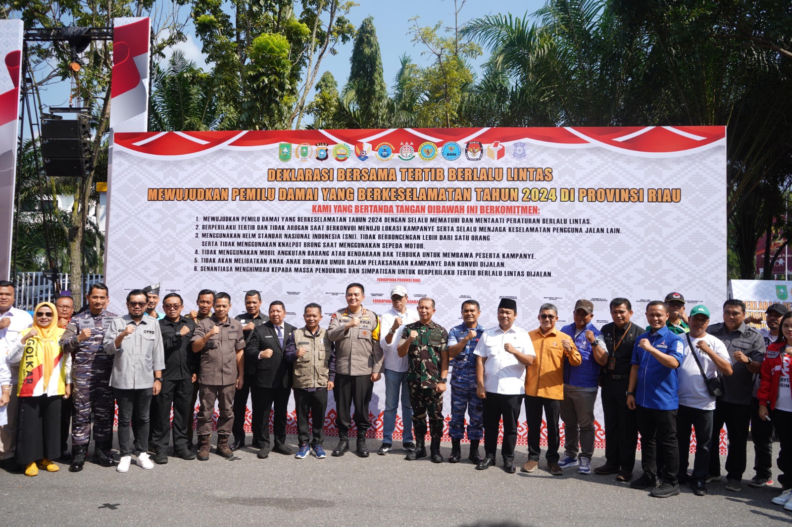 Kapolda Riau Gagas Deklarasi Bersama Tertib Berlalu lintas Dalam Mewujudkan Pemilu Damai yang berkeselamatan Tahun 2024