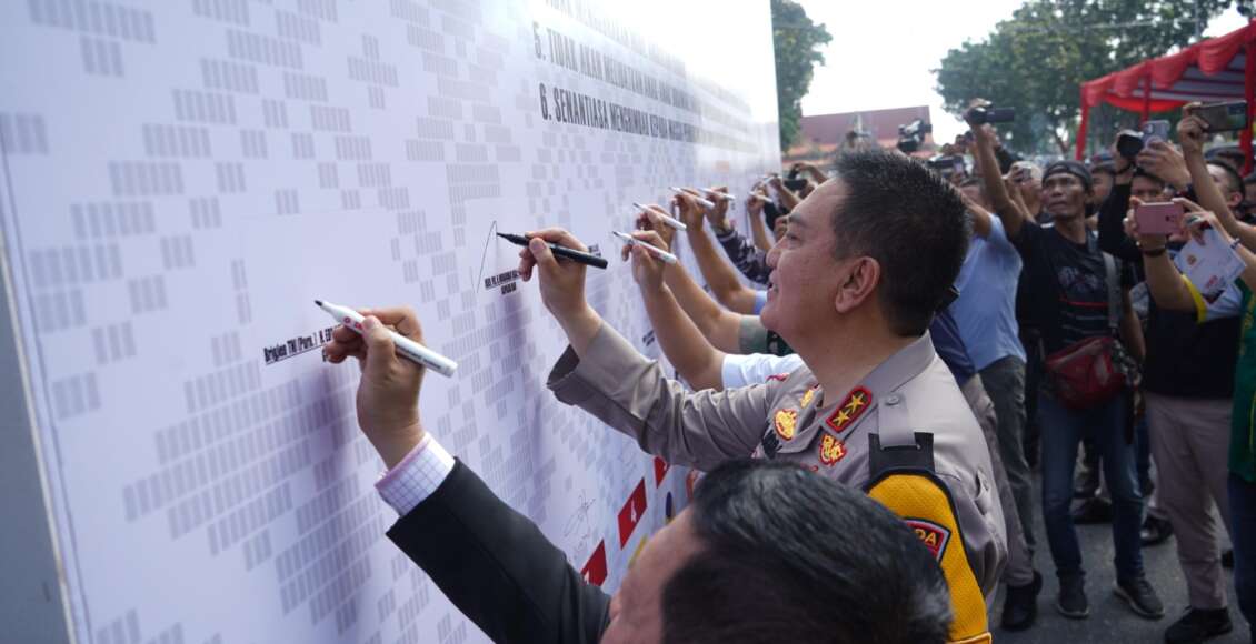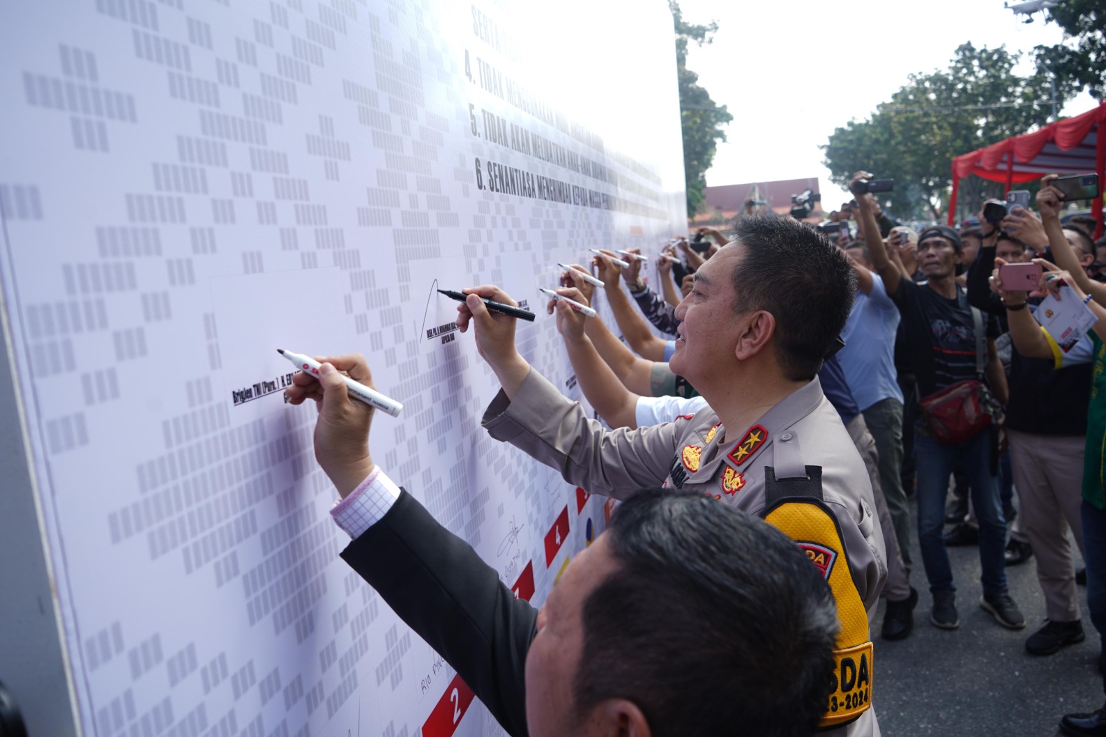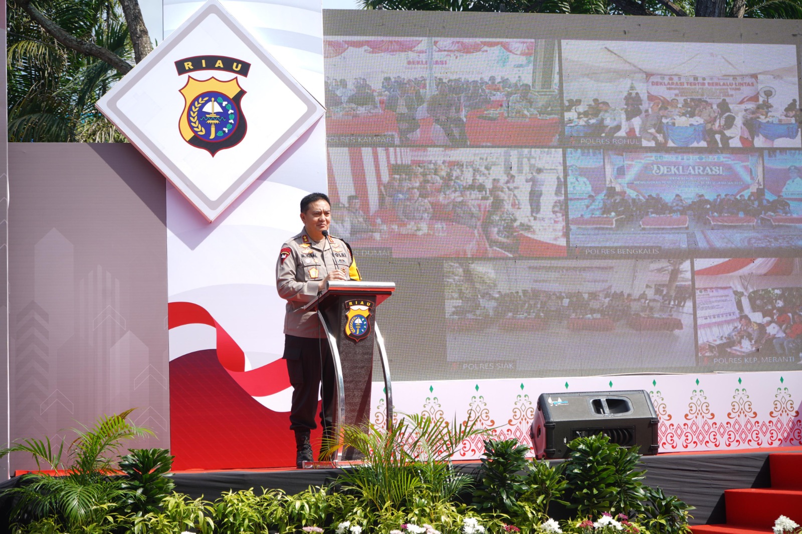 Kapolda Riau Gagas Deklarasi Bersama Tertib Berlalu lintas Dalam Mewujudkan Pemilu Damai yang berkeselamatan Tahun 2024