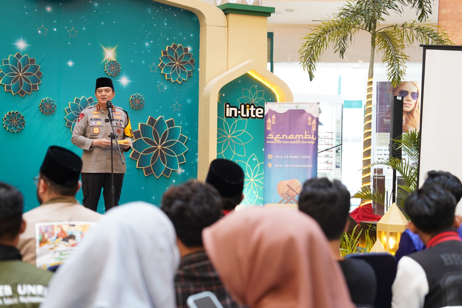 PEKANBARU,ikagawanews.id – Kapolda Riau Irjen. Pol. Mohammad Iqbal menghadiri acara puncak Serambi (Semarak Ramadhan Berbagi) di Atrium Mall SKA Pekanbaru. Acara tersebut juga dihadiri oleh Dirbinmas Kombes. Pol. Rudi Abdi Kasenda beserta anak-anak muda penyelenggara,Kamis (28/3/24)