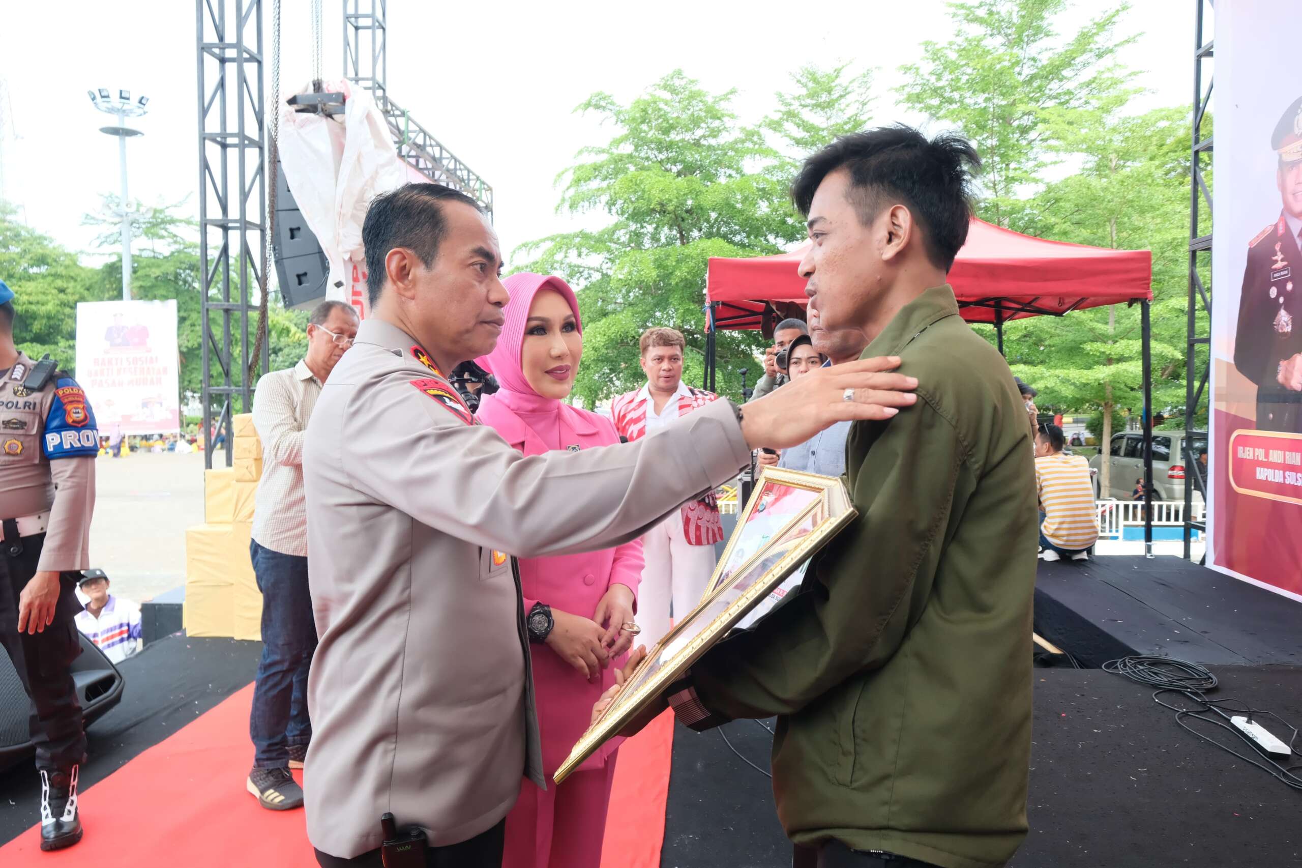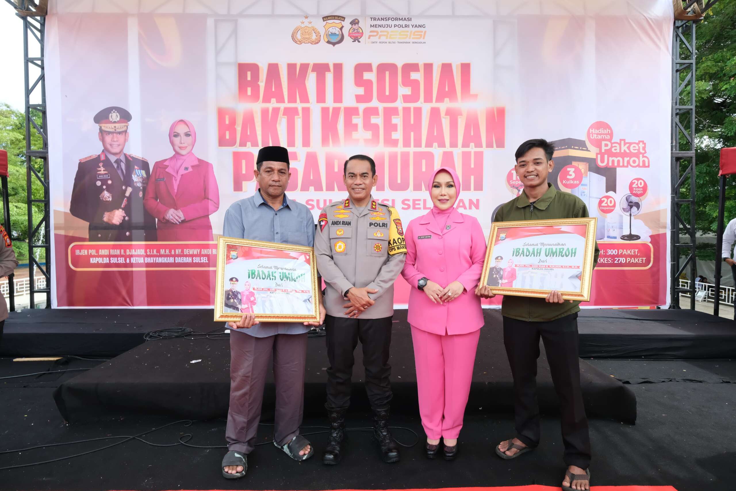 Diketahui dalam kegiatan Bakti Sosial. Kapolda Sulawesi Selatan membagikan kepada masyarakat 3.400 Paket Sembako 2 Paket umroh serta doorprize menarik lainnya.
