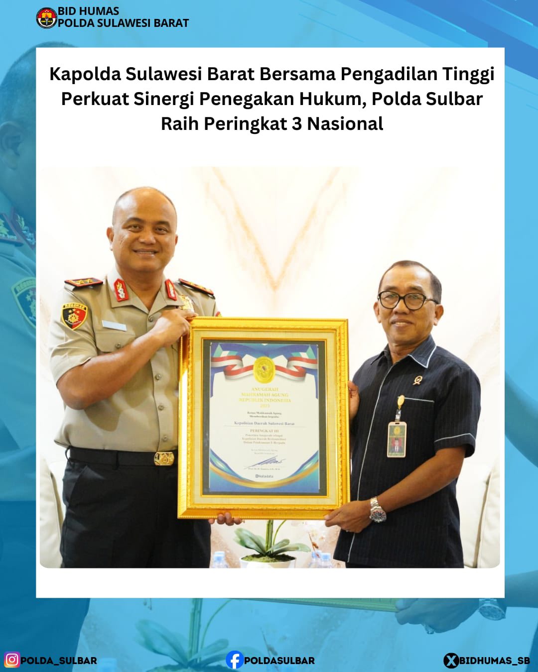Kapolda Sulbar Bersama Pengadilan Tinggi Perkuat Sinergi Penegakan Hukum, Polda Sulbar Raih Peringkat 3 Nasional